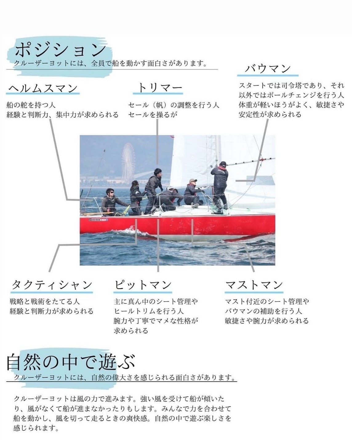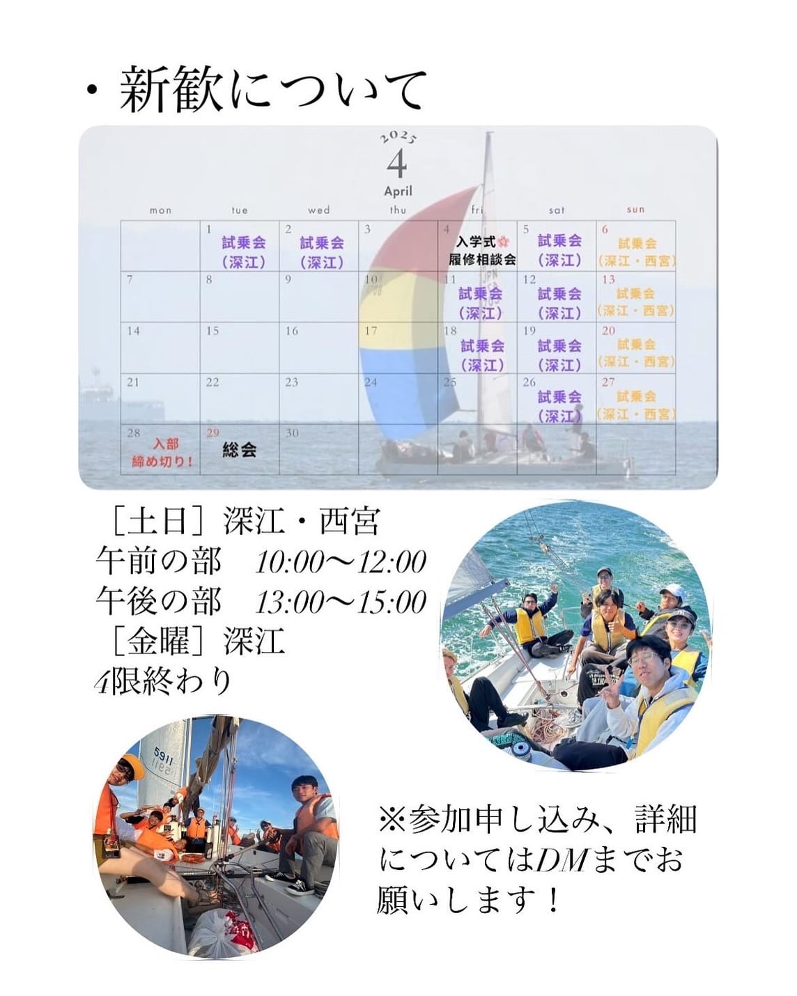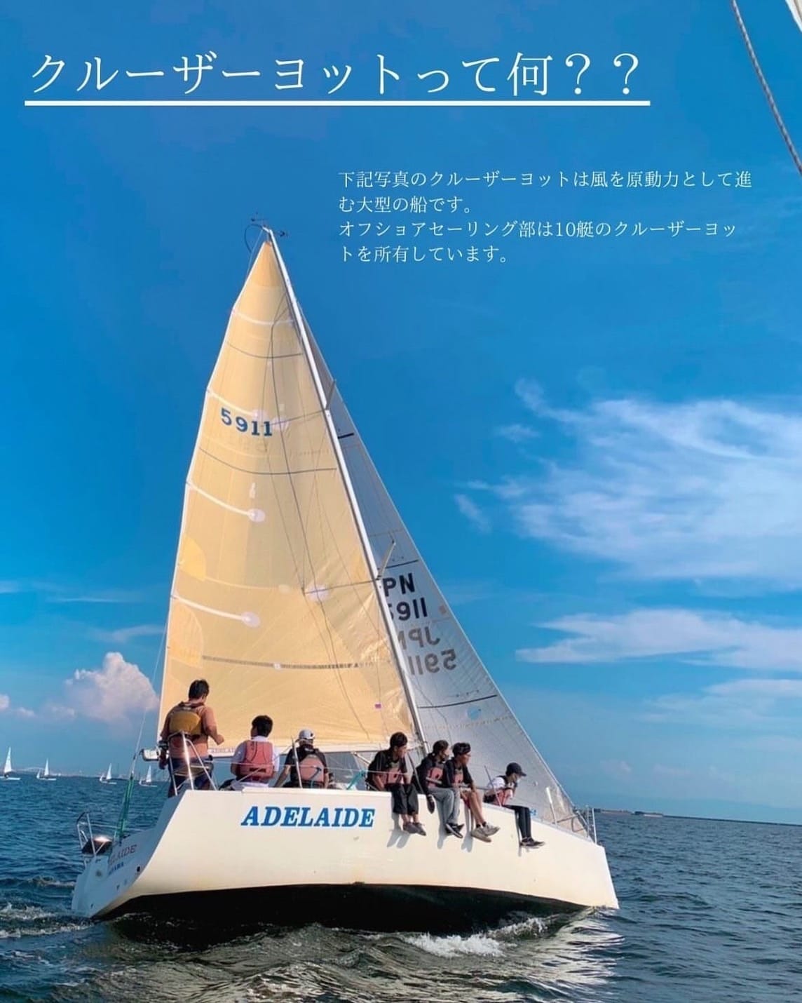 オフショアセーリング部は、年間を通して部員募集中です。